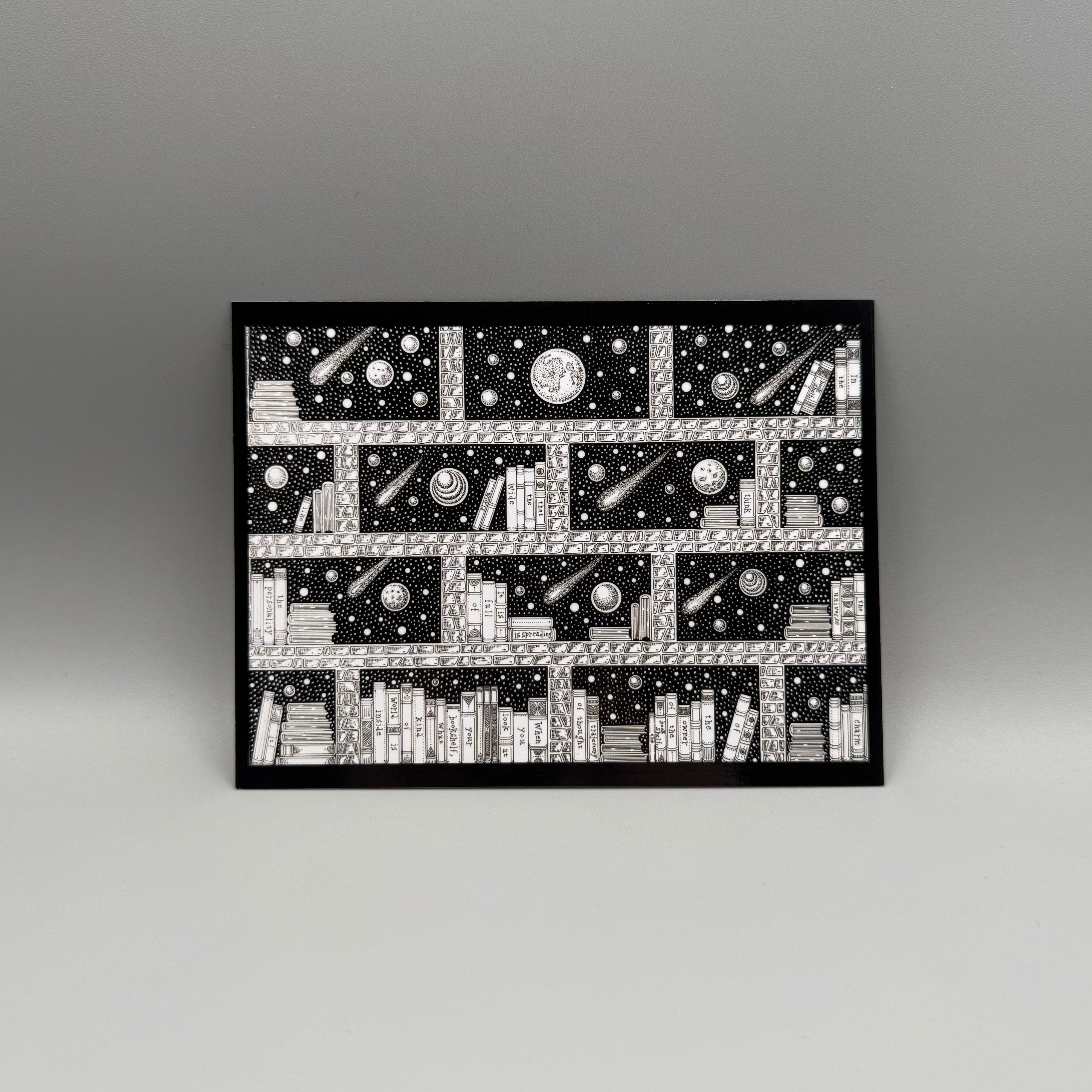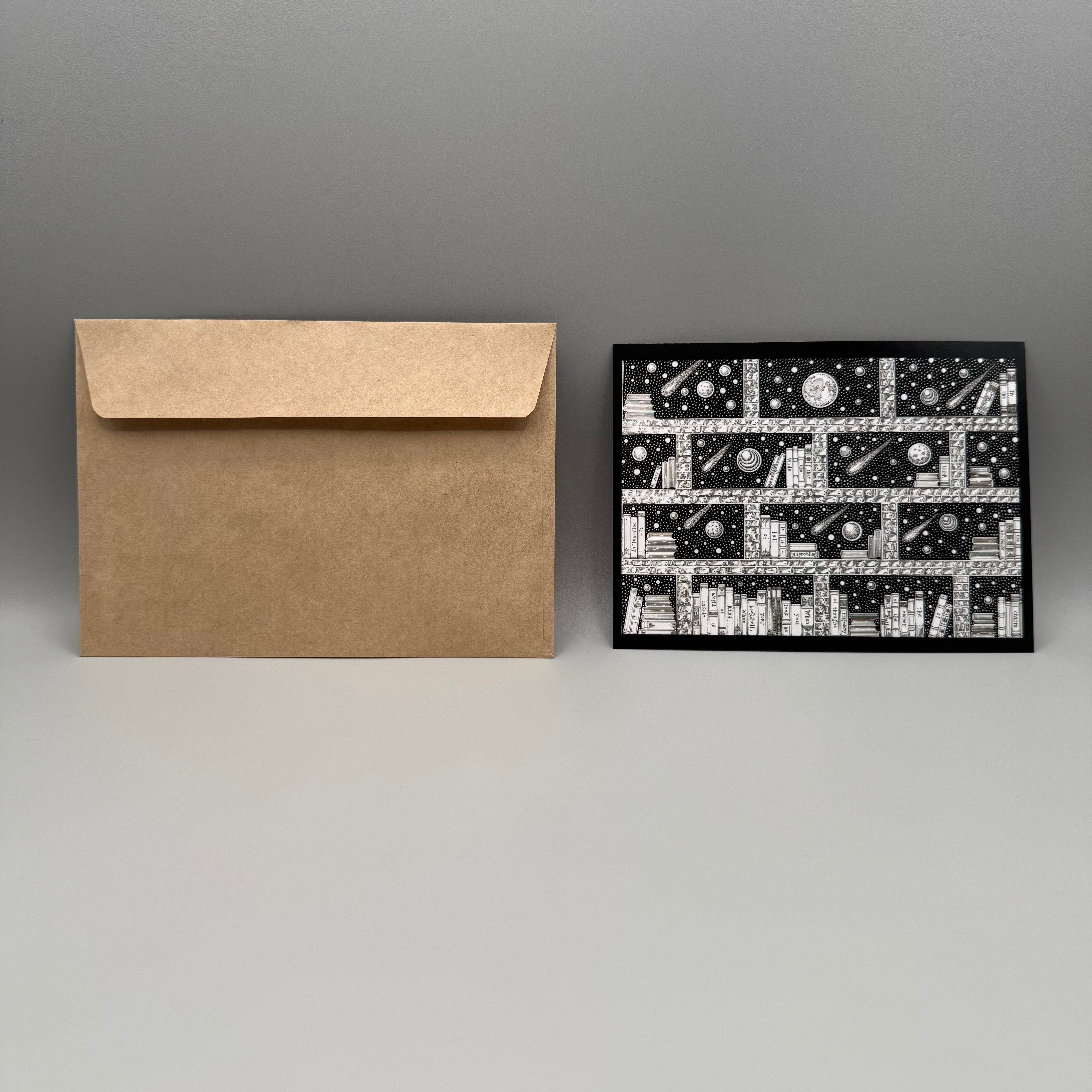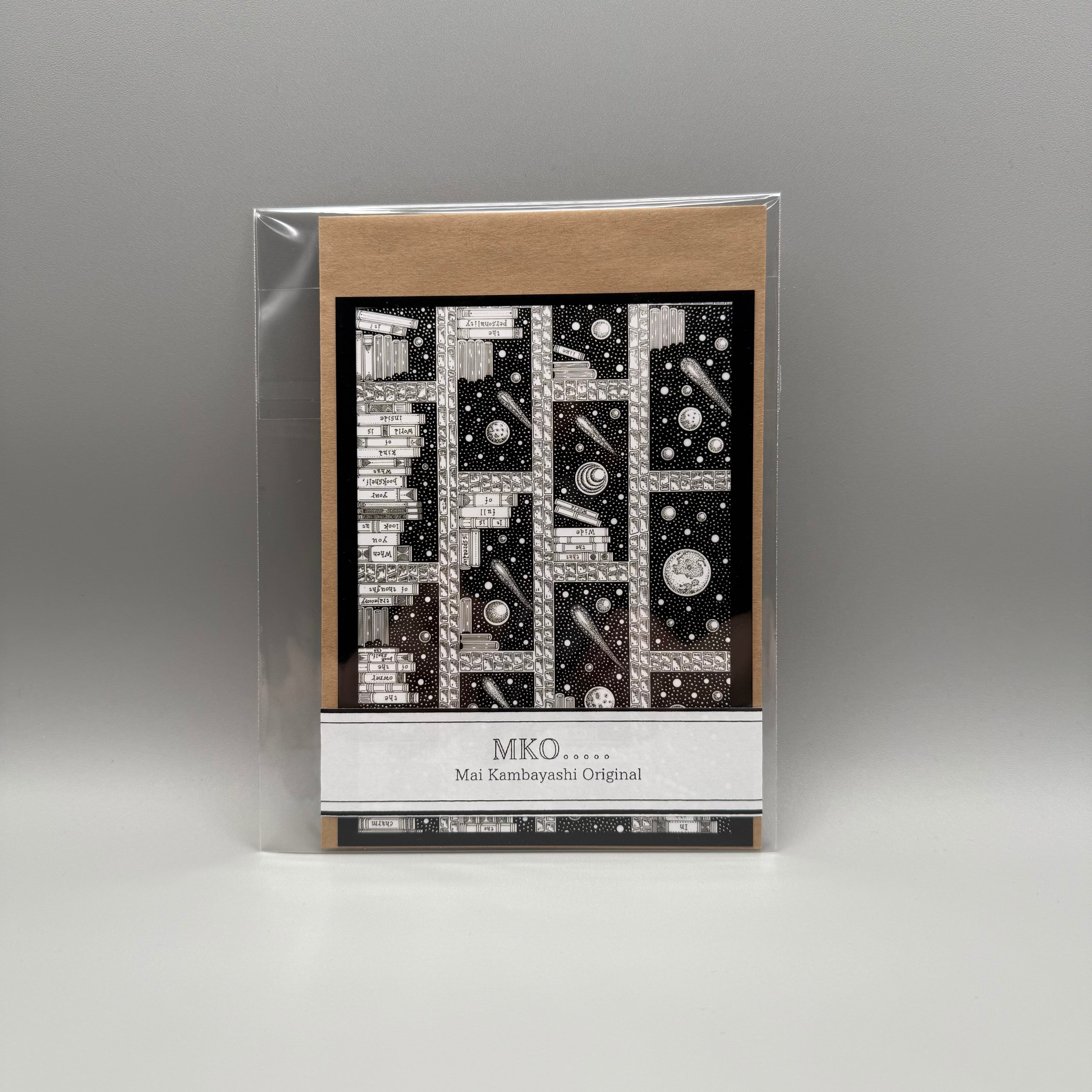◆ 作品「本棚に広がる世界」をデザインしたポストカードです。